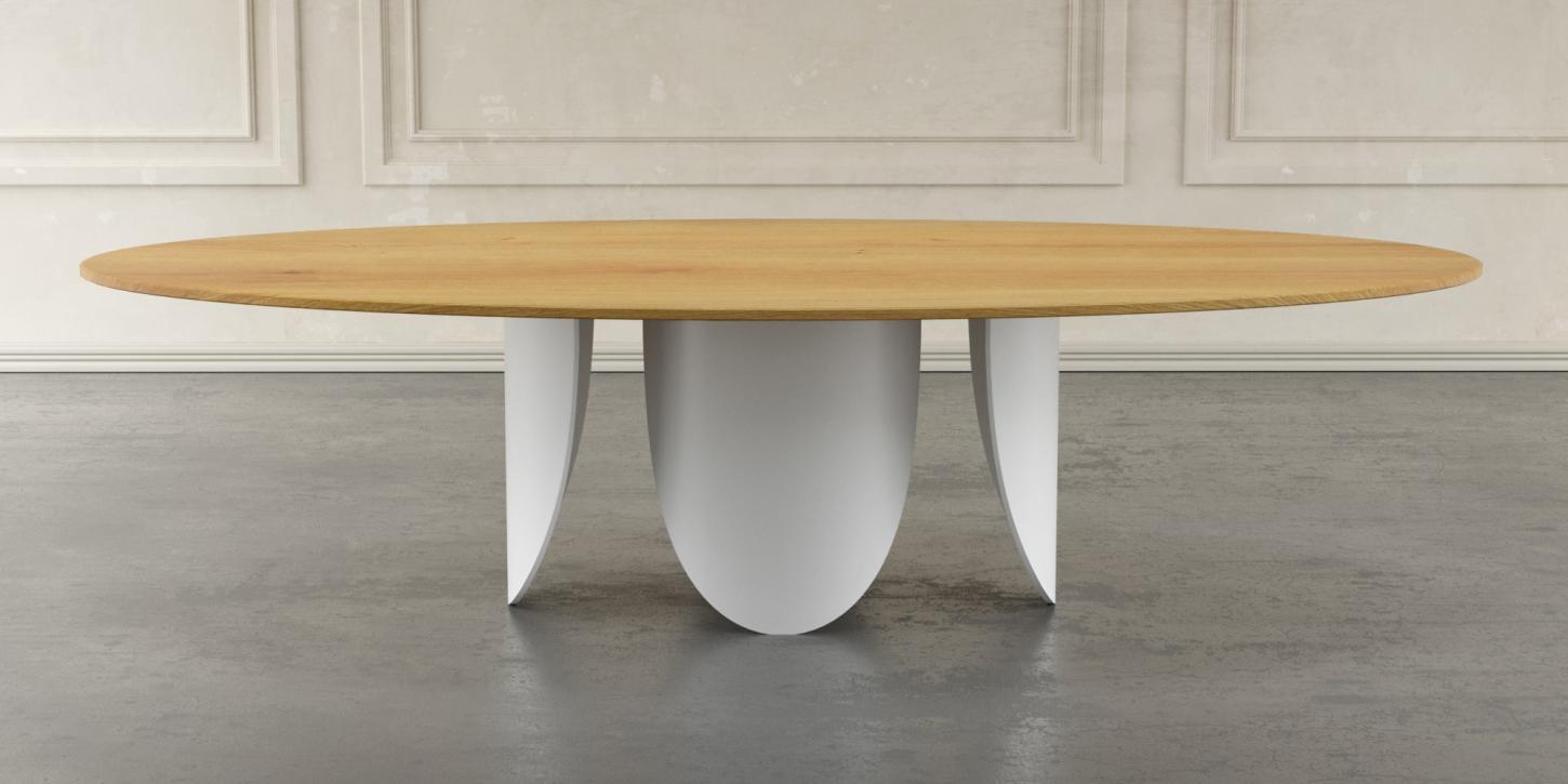 Dieses außergewöhnliche Tischgestell überzeugt durch seine harmonisch gerundete Formensprache und eine stabile Konstruktion aus Metall. Ob aus lackiertem Metall, Rohstahl oder Edelstahl – das Gestell wird zum stilvollen Zentrum unter jeder Tischplatte.