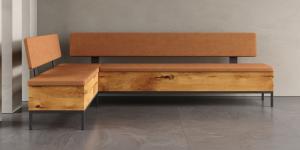 Erleben Sie die perfekte Verbindung von Funktionalität und anspruchsvollem Design mit unserer individuellen Massivholzbank. Die Kombination aus einem stabilen Metallgestell und einer hellbraunen Polsterung bietet sowohl Komfort als auch Stil für jedes Zuhause.
