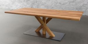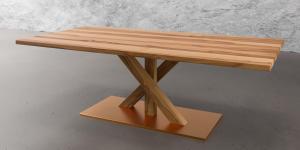 Massiver Esstisch aus Wildbuche: Säulen- und Metall-Design E40