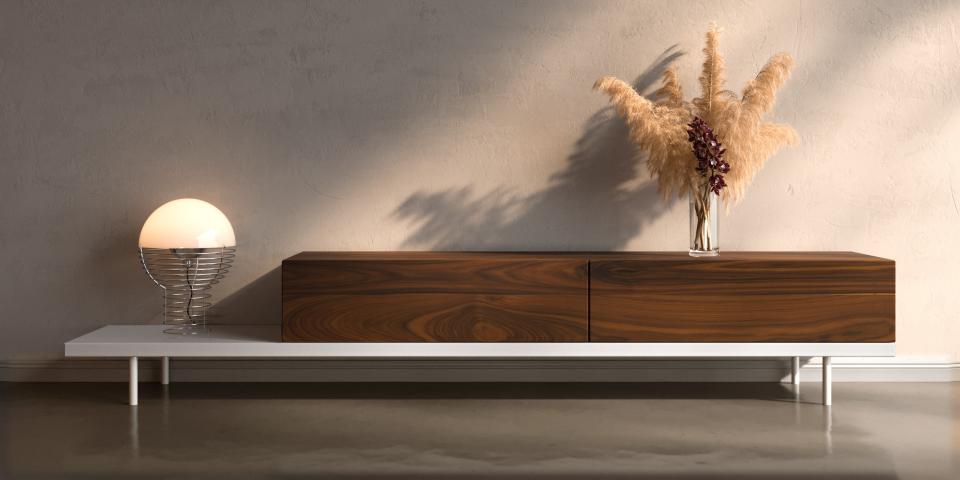 Entdecken Sie das luxuriöse Nussbaum Lowboard, maßgefertigt für anspruchsvolle Interieurs.