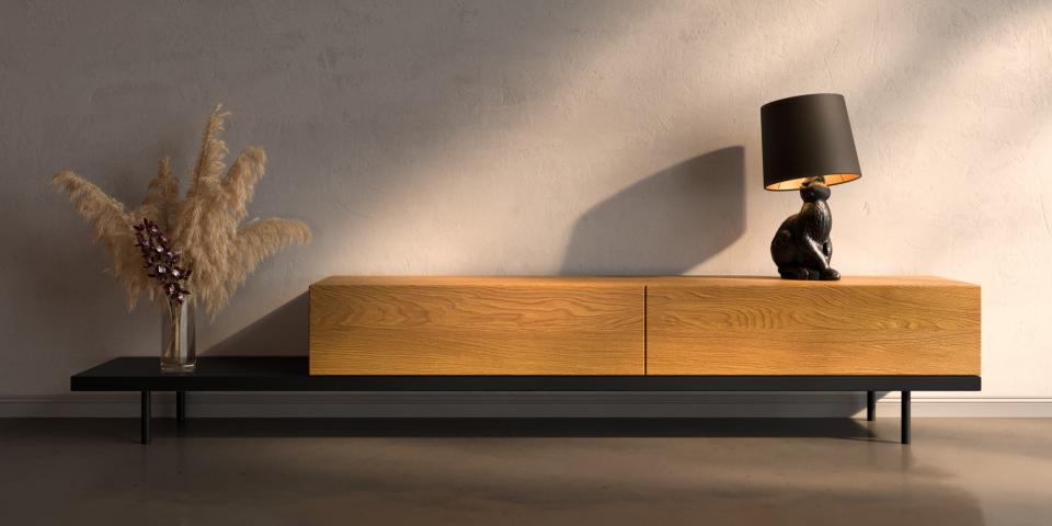 Erhöhen Sie die Ästhetik Ihres Raumes mit unserem Lowboard aus geköhlter Eiche.